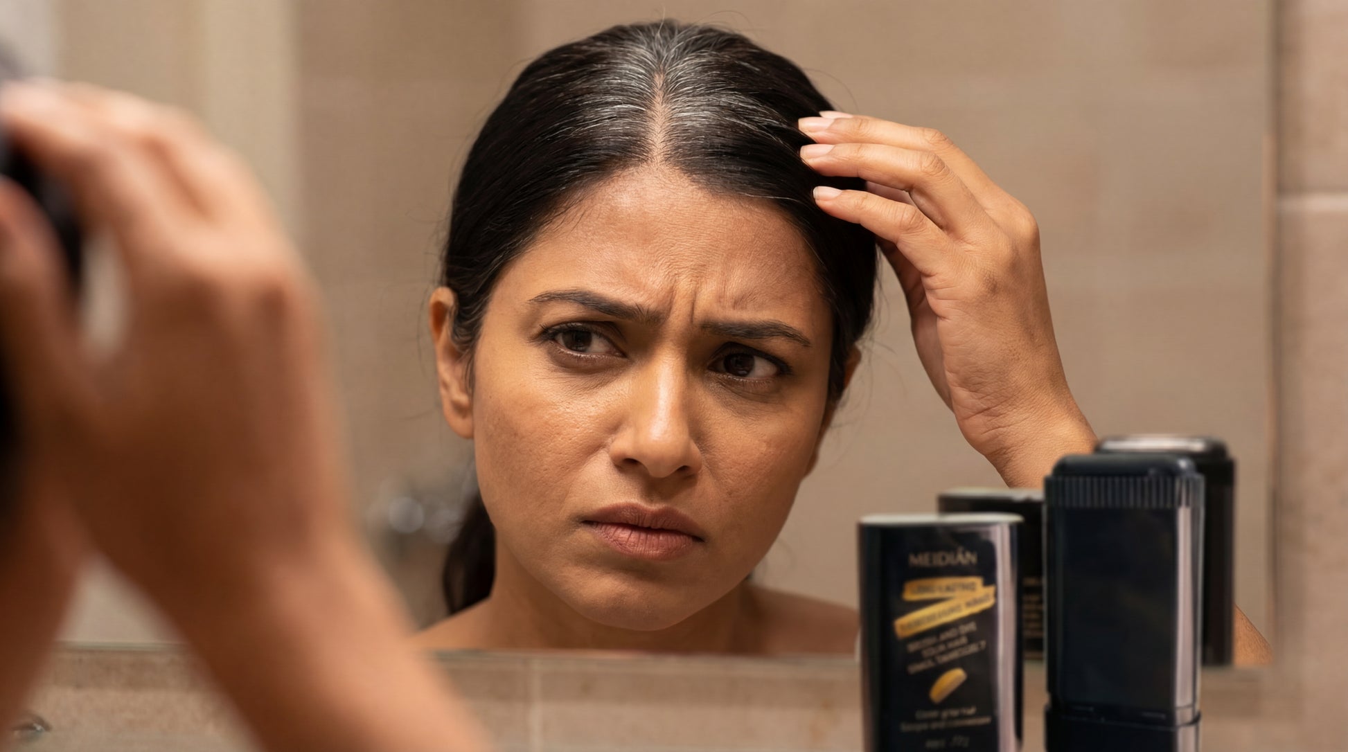 2. Twist the Instant Hair Dye Stick up and apply directly to roots, edges, or thinning areas.